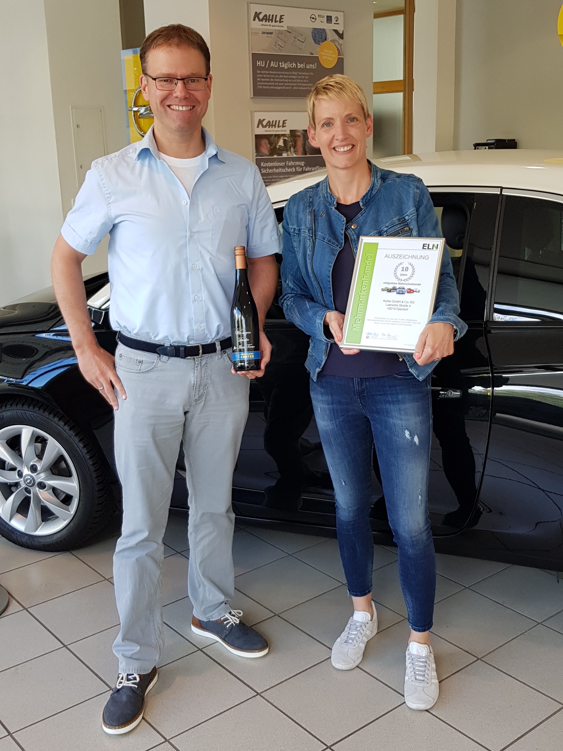 07.2020: Seit mittlerweile 10 Jahren betreiben wir erfolgreich Mehrmarkenhandel, Auszeichnung an Antje Kahle durch unseren Partner ELN, hier vertreten durch Herrn Roman Roll.