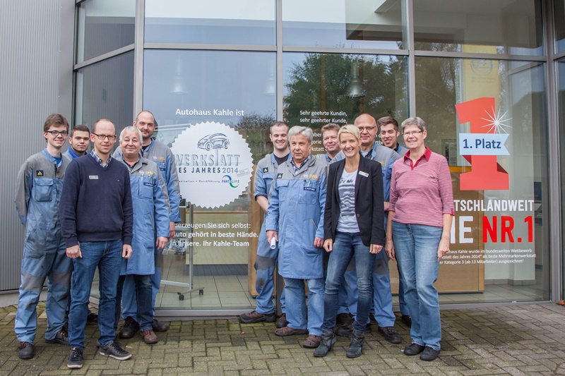 Um den jeweiligen Verhältnissen besonders gerecht zu werden, wird nach unterschiedlichen Betriebsgrößen getrennt bewertet. Die Werkstätten treten nur gegen Betriebe an, mit denen sie sich auf jeden Fall vergleichen lassen. Das Autohaus Kahle aus Glandorf hat unter Beweis gestellt, dass konsequente Leistung zum Erfolg führt. Die Urkunde mit dem 1. Platz in der Kategorie 3 erhielt natürlich einen Ehrenplatz im Betrieb, damit auch die gesamte Kundschaft an dieser Leistung teilhaben kann.