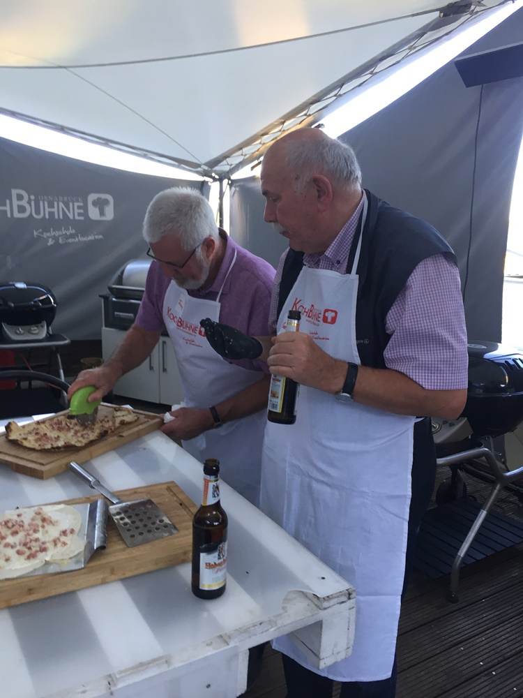 An diesem Abend wurde vorab Flammkuchen vom Grill zubereitet, gefolgt vom Dry Aged Cheeseburger, T-Bone-Steak mit Grilltomate und Süßkartoffelstampf, gefüllter Maishähnchenbrust auf Couscous-Salat, sowie Lachs auf Sommersalat mit Mangoessig. Als süßen Abschluss genossen wir Pancakes mit Früchte-Ragout in Kokossauce. Mit ganz neuen Grill- und Geschmackseindrücken vergingen die sechs Stunden wie im Fluge. In Gemeinschaft zu kochen bzw. zu grillen mit top-Geschmackserlebnis machte einfach nur Spaß. Dazu eine tolle Anleitung und Moderation von Profis, garniert mit lockeren Sprüchen und den passenden Getränken, Insider-Tips und Rezepten – die nächste Grillsaison kann kommen!