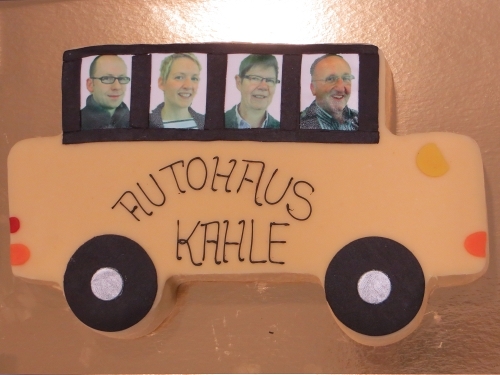 Anlässlich unseres Werkstattumbaus 2013/2014 überraschten uns die Nachbarn im Januar 2014 mit einer leckeren Tortenkreation in Form eines Autos.